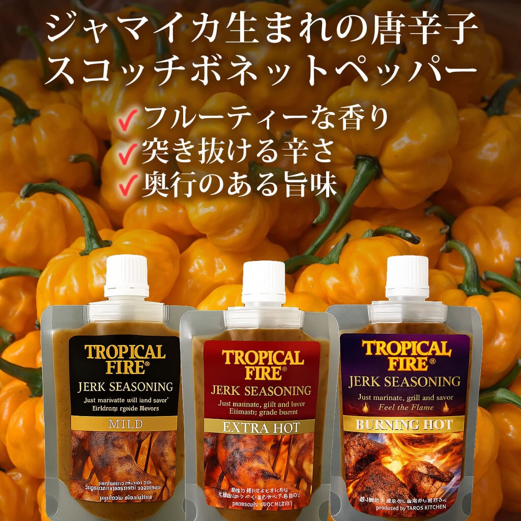 原材料:ねぎ(中国産)、にんにく、ライム果汁、醸造酢(リンゴを含む)、パイナップル果汁、食塩、植物油、唐辛子、パプリカ、オールスパイス、黒こしょう、生姜粉末、砂糖、ケチャップ、タイム、ベイリーフ